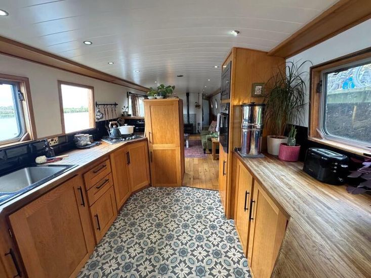 Configured in the popular reverse layout with a generous cruiser stern, The Morning Star is a comfortable homely boat that is full of character. She is a well equipped boat and is more than suitable for live-aboard use. Onboard equipment includes 4 solar panels, cassette toilet, 3kw inverter, 8kw multi fuel stove, cratch and stern pram cover.