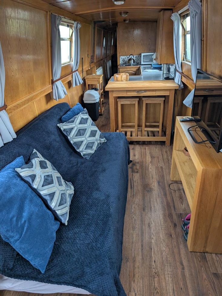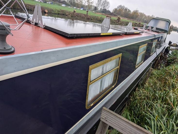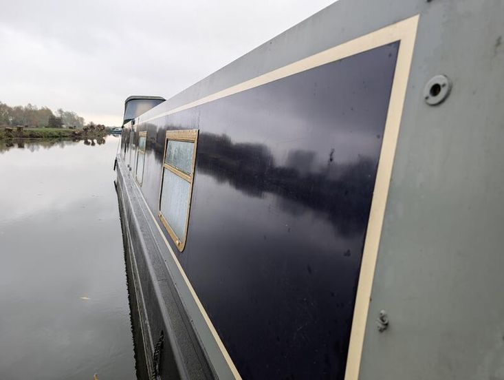 Measham boats 55-ft narrowboat semi trad in very good condition inside and out completely oak paneled with walnut flooring 1200w solar array New leisure batteries Survey available on request repainted professionally 3 years ago to be sold with a full 4 years boat safety certificate recent appliances and fridge. New shower would make an ideal live aboard or summer cruiser beta marine engine.