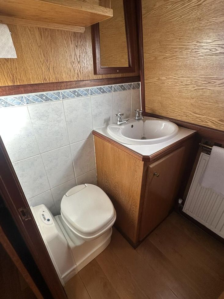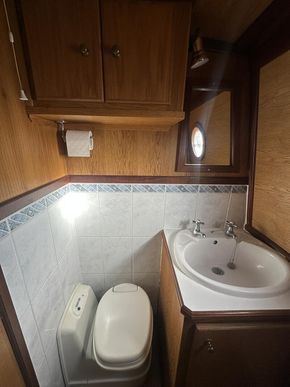 The boat is powered by a Beta 43 diesel engine located in the engine room. Recent maintenance includes a full hull blacking and the installation of new domestic batteries, improving onboard service capacity. Overall, the boat follows a typical Hudson arrangement, offering a practical and functional setup for extended cruising.