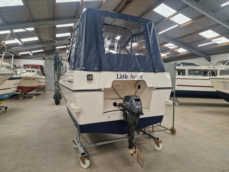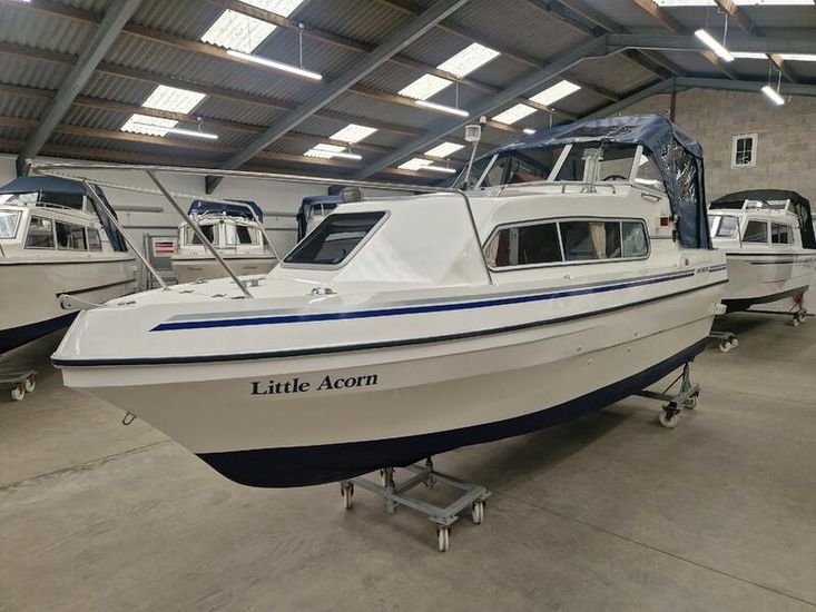 For Sale Viking 22 Wide Beam called Little Acorn, Length 22ft, Beam 7ft4ins, Built 1994, 4 Berths, cooker with 3 ring hob and grill, fridge, hot and cold water system, 12 and 240 volts electrics, solar panel, NEW CANOPY, recent NEW CREAM LEATHERETTE CABIN CUSHION COVERS WITH BLUE PIPING, powered by a Yamaha 20hp 4 stroke outboard engine (just been serviced), Bsc 2029, all original gelcoat (not painted), hull and cabin fully polished and new antifouling, includes new mooring ropes, clean fenders, etc, FREE DELIVERY within 250 miles or local mooring available, £19,995. Viewing by appointment only at our Leicestershire indoor showroom, please contact David on 07721 382619.